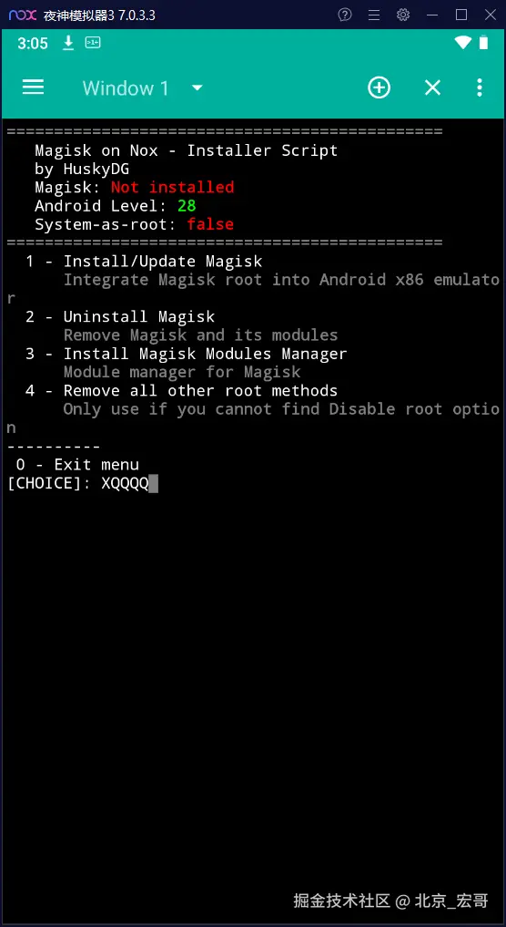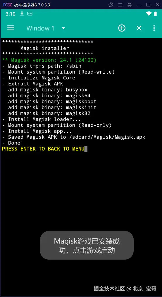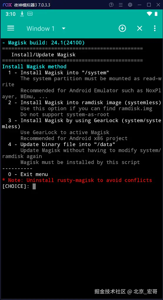 B.然后出现这个界面👇,输入 1(安装 magisk), 回车