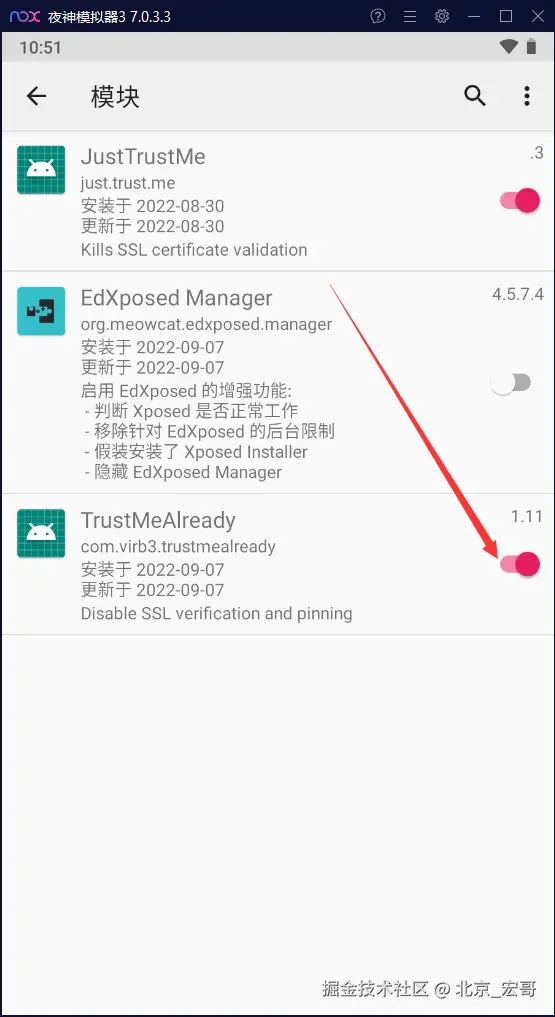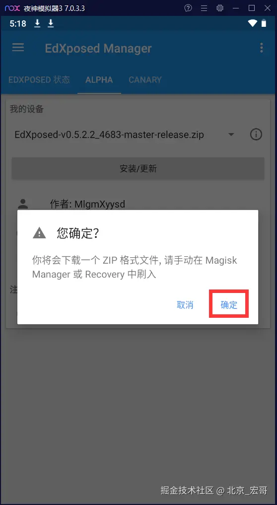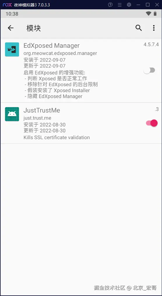 也不知道宏哥是在模拟器上的原因还是其他原因,安装这一套软件过程中,发现软件之间的版本匹配要求较高,宏哥也是经过好几天的不断尝试才安装成功,为此宏哥将文章中的用到的软件打包供大家学习使用。关注宏哥公众号,回复“EdXposed全家桶” 获取下载地址。