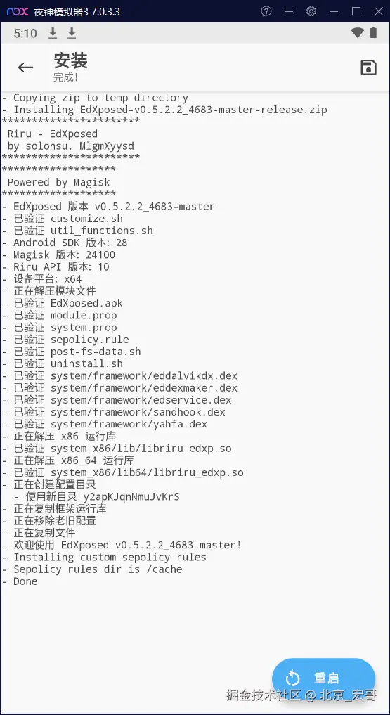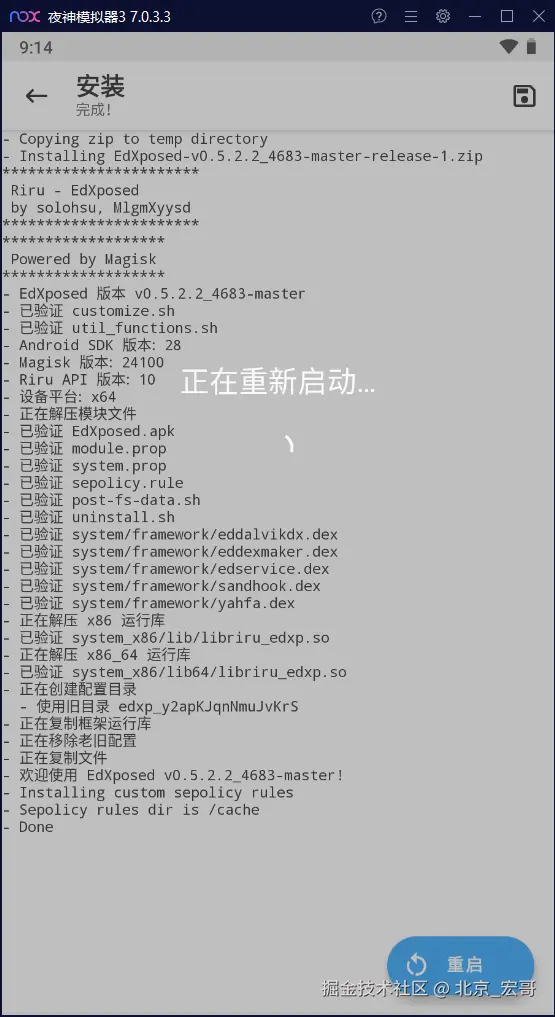 2.然后使用Magisk安装最新的EdXposed重启看看是否成功。如下图所示: