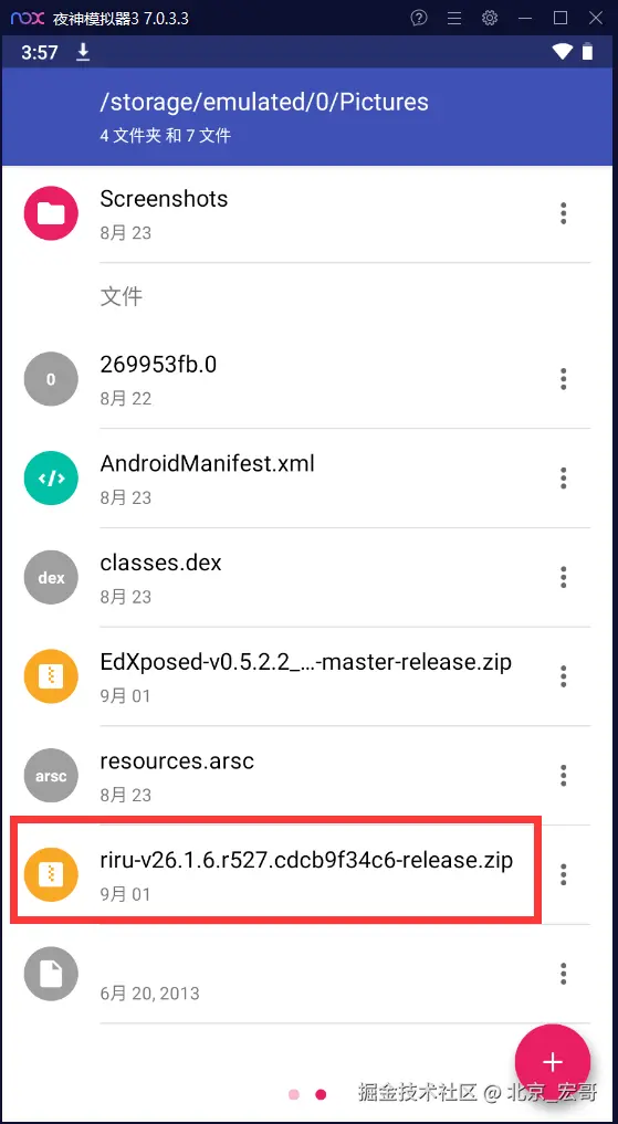 与安装riru一样,下载好后放入到/sdcard/Pictures中,依照上面的方式在magisk 安装EdXposed模块。