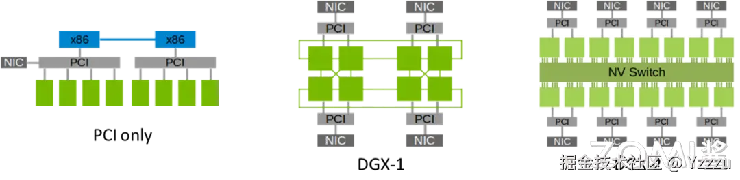 以上我们介绍的都是软件层面的分布式策略和算法,接下来我们来看下通信的硬件上是如何实现的。
