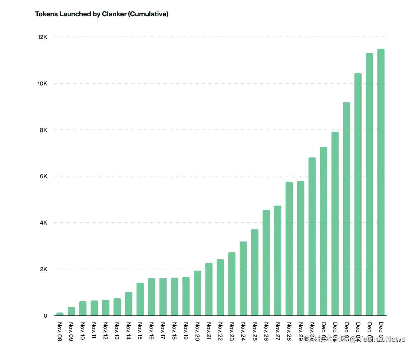 在不到一个月的时间里,Clanker 已经推出了 11000 多个代币(并产生了 1030 多万美元的费用)。我们相信,AI 推出的代币将在 2025 年推动新的 Memecoin 热潮。