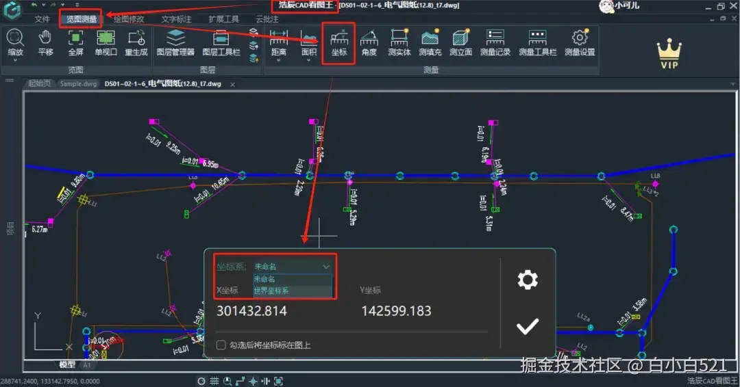 (1)点击测量坐标后,发现测量的坐标结果与图纸上显示不一致;