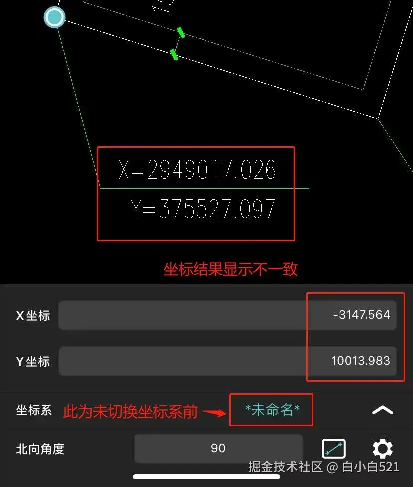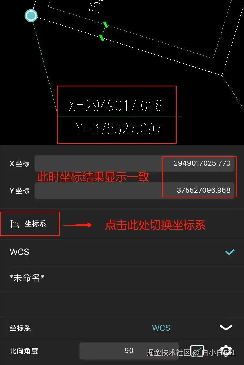 (2)此时可以点击切换坐标系,切换至另外一个坐标系,页面上坐标结果已与图中一致啦。