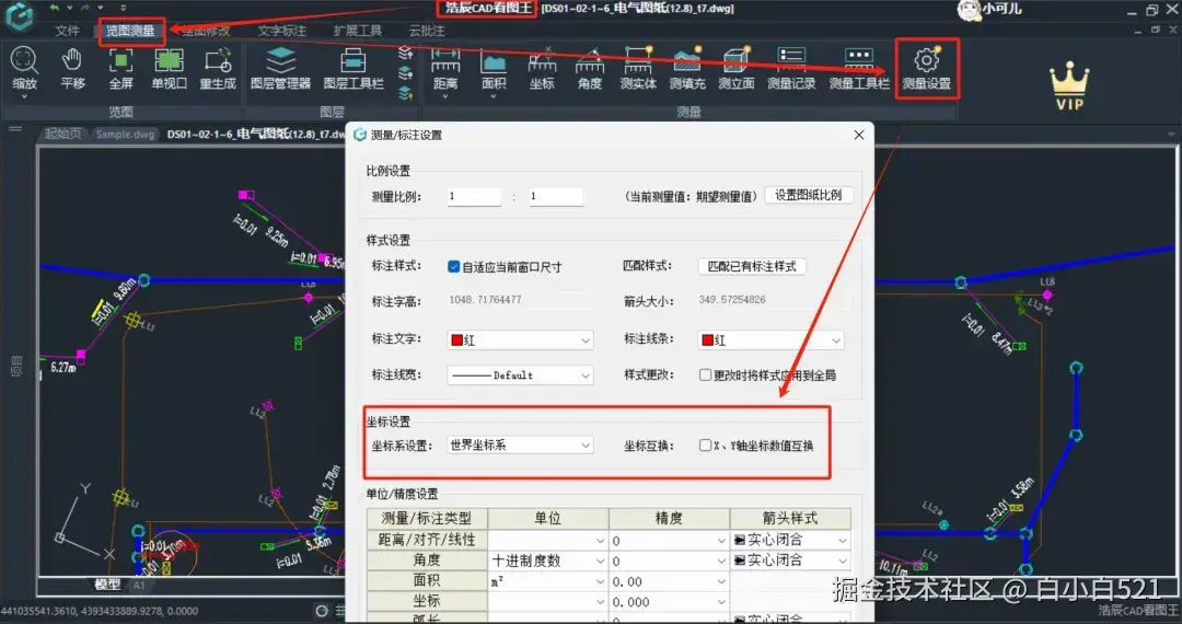 除了上面我们在测量的时候进行坐标系切换以外,我们还可以在【测量设置】里面进行坐标系的转换,如下图所示,我们可以对坐标系进行设置,还可以对X,Y的坐标进行互换。