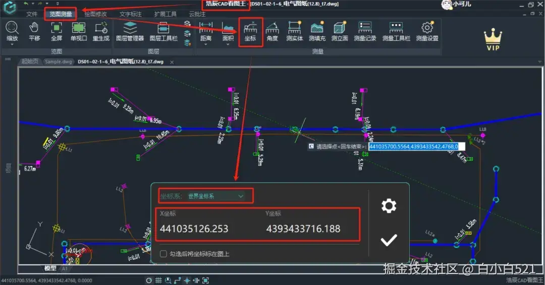当你的图纸上包含多个坐标系的时候,如果测量坐标结果不一样,记得切换坐标系再测量,此时测量结果就是完全一致的。