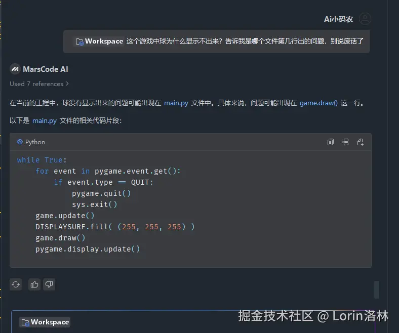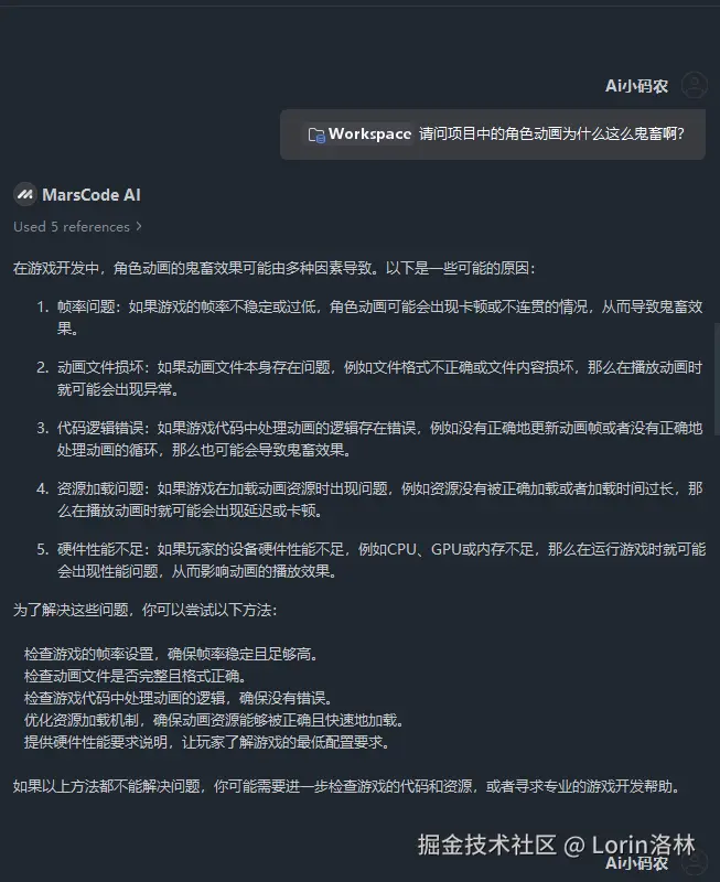 - 这里虽然种下了一颗怀疑的种子,但是也让我们看到了 MarsCode AI 优秀的学习能力,在一个项目的长期开发学习中,具备很大的参考意义,能让我们避免在一个问题上重复犯错。