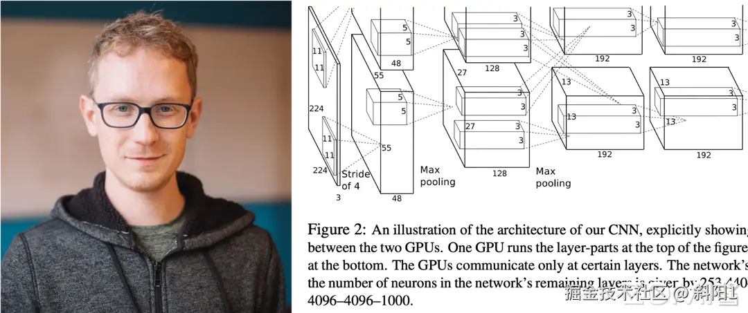 2012 年 9 月,Alex Krizhevsky,Ilya Sutskever 和 Geoffrey Hinton,团队通过设计 AlexNet[[14]] 赢得 ImageNet 竞赛,神经网络开始再次流行。首次采用 ReLU 激活函数,扩展了 LeNet5 结构,添加 Dropout 层减小过拟合,LRN 层增强泛化能力/减小过拟合。这些新的模型结构和训练方法影响着后续的模型设计和系统优化,例如:激活函数和卷积层的内核融合计算等。其花费 5 到 6 天,采用 2 块英伟达 GTX 580 3GB GPUs 对计算进行加速,进而形成 AI 系统以 GPU 等加速器为主要计算单元的架构。