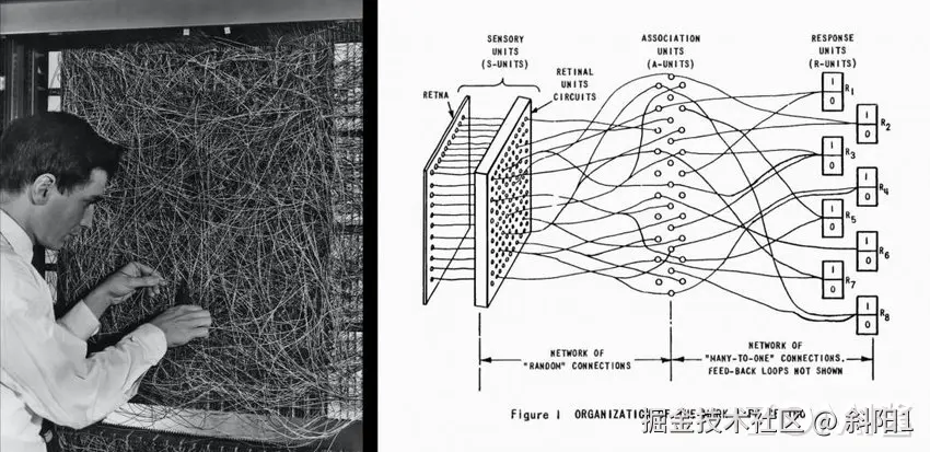 1960 年,Bernard Widrow[[5]] 和 Hoff 发明了感知器 Adaline/Madaline,首次尝试把线性层叠加整合为多层感知器网络。感知器本质上是一种线性模型,可以对输入的训练集数据进行二分类,且能够在训练集中自动更新权值。感知器的提出吸引了大量科学家对人工神经网络研究的兴趣,对神经网络的发展具有里程碑式的意义。为之后的多层 AI 的网络结构奠定了基础,进而后期不断衍生更深层的模型,产生大模型和模型并行等系统问题。