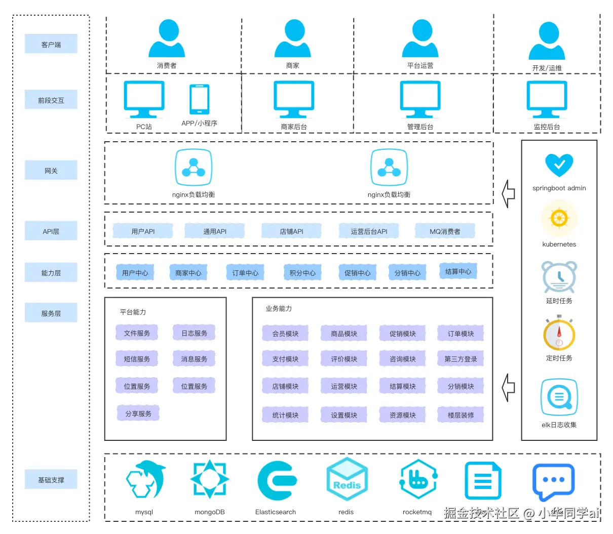 | 缓存 | Redis +MongoDB | 搜索引擎 | Elasticsearch |