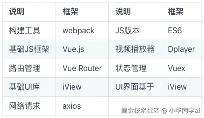 | 基础框架 | Spring Boot | MVC框架 | Spring MVC |