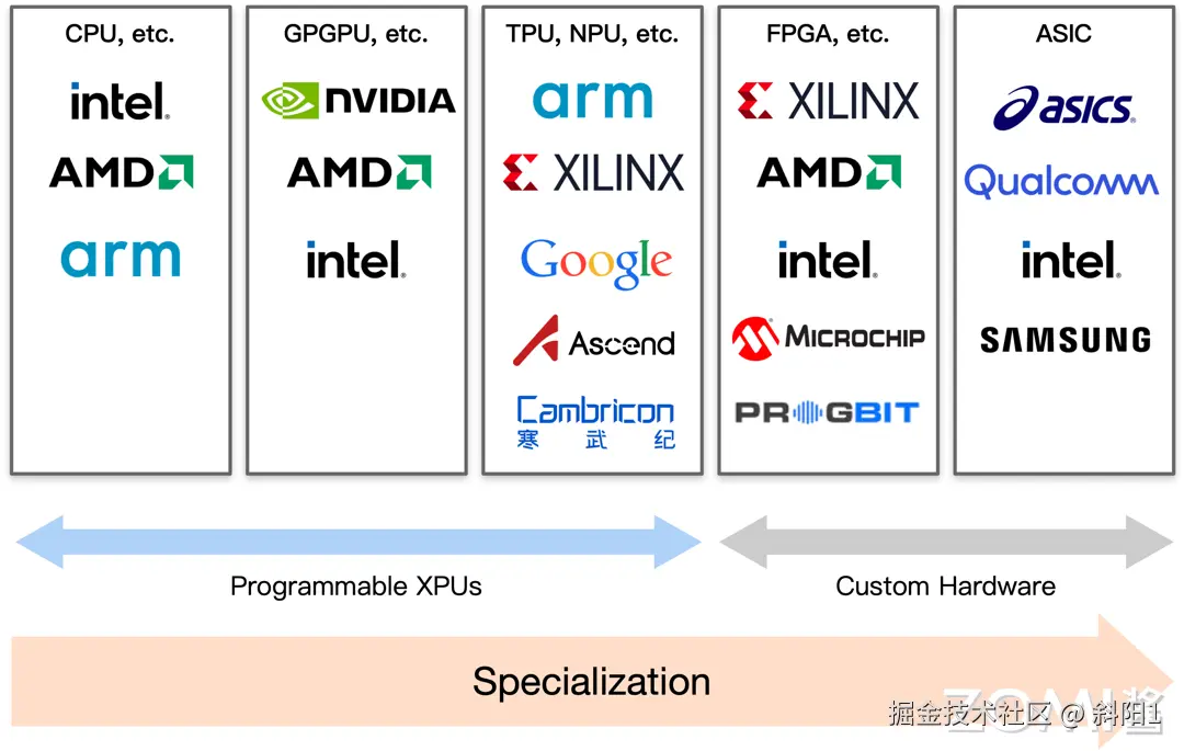 首先,下一代编译器需要提供硬件抽象,以跨越多样化的加速器。随着 GPU、FPGA、ASIC 等不同类型的加速器的出现,编译器必须能够抽象出硬件的具体细节,为开发者提供一个统一的编程接口。这样,开发者就可以专注于算法和应用的开发,而不必深入了解底层硬件的复杂性。