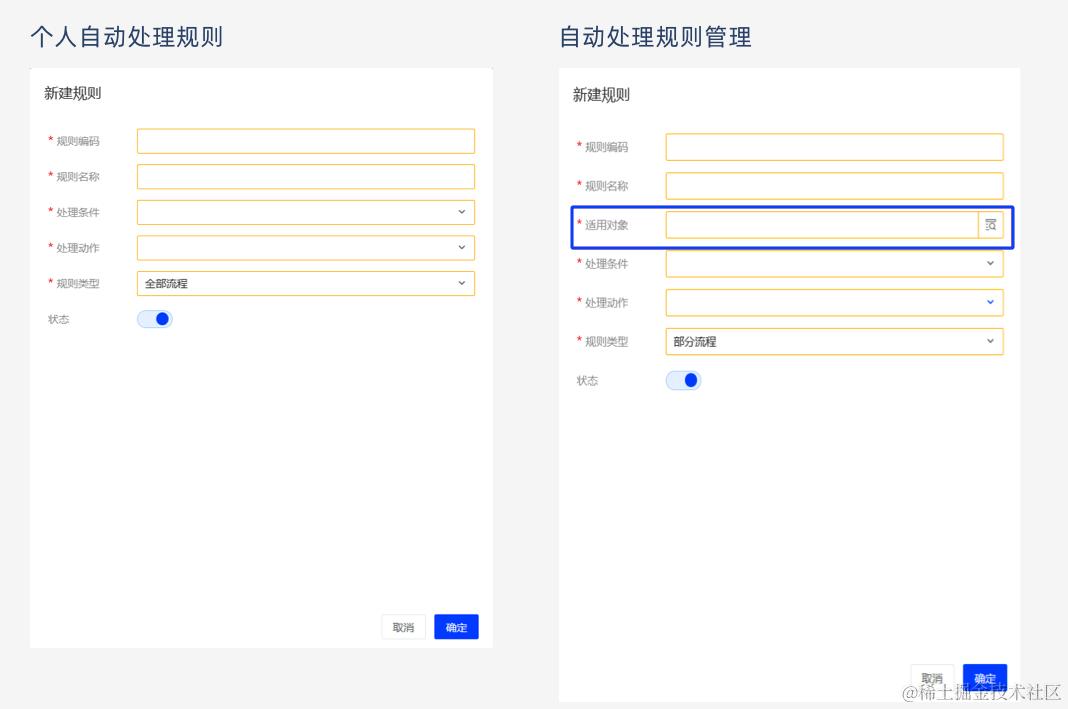 注:针对全部流程的自动处理规则仅可设置一条。针对同一适用对象的部分流程的自动处理规则在同一生效期间仅可设置一条。
