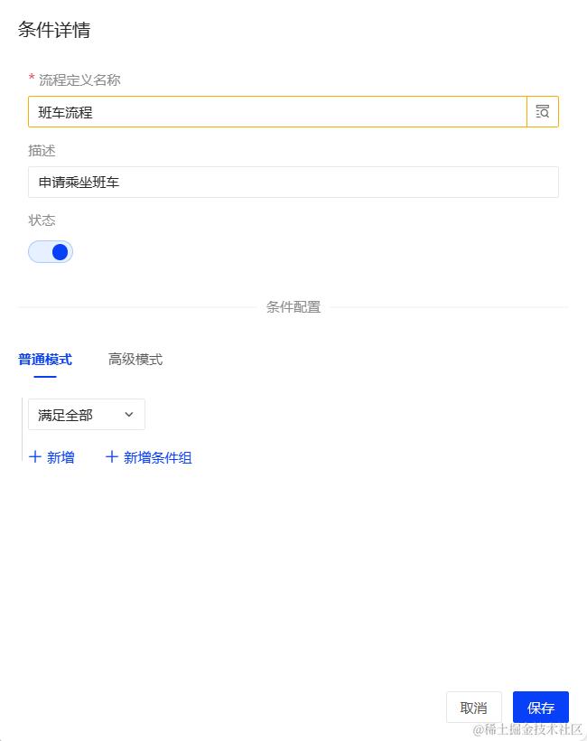 针对规则类型=部分流程的自动处理规则,支持对规则中包含的流程定义进行条件配置,多条流程定义可配置不同的条件。仅当满足条件后,针对该流程定义的自动处理规则才会生效。