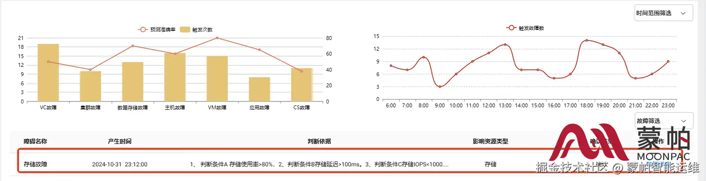 因此,蒙帕通过增加针对故障预防支持的指标通过算法来识别单个指标值是否存在异常,结合算法判断出的结果进行评估是否存在潜在故障,达到故障预防的目的。