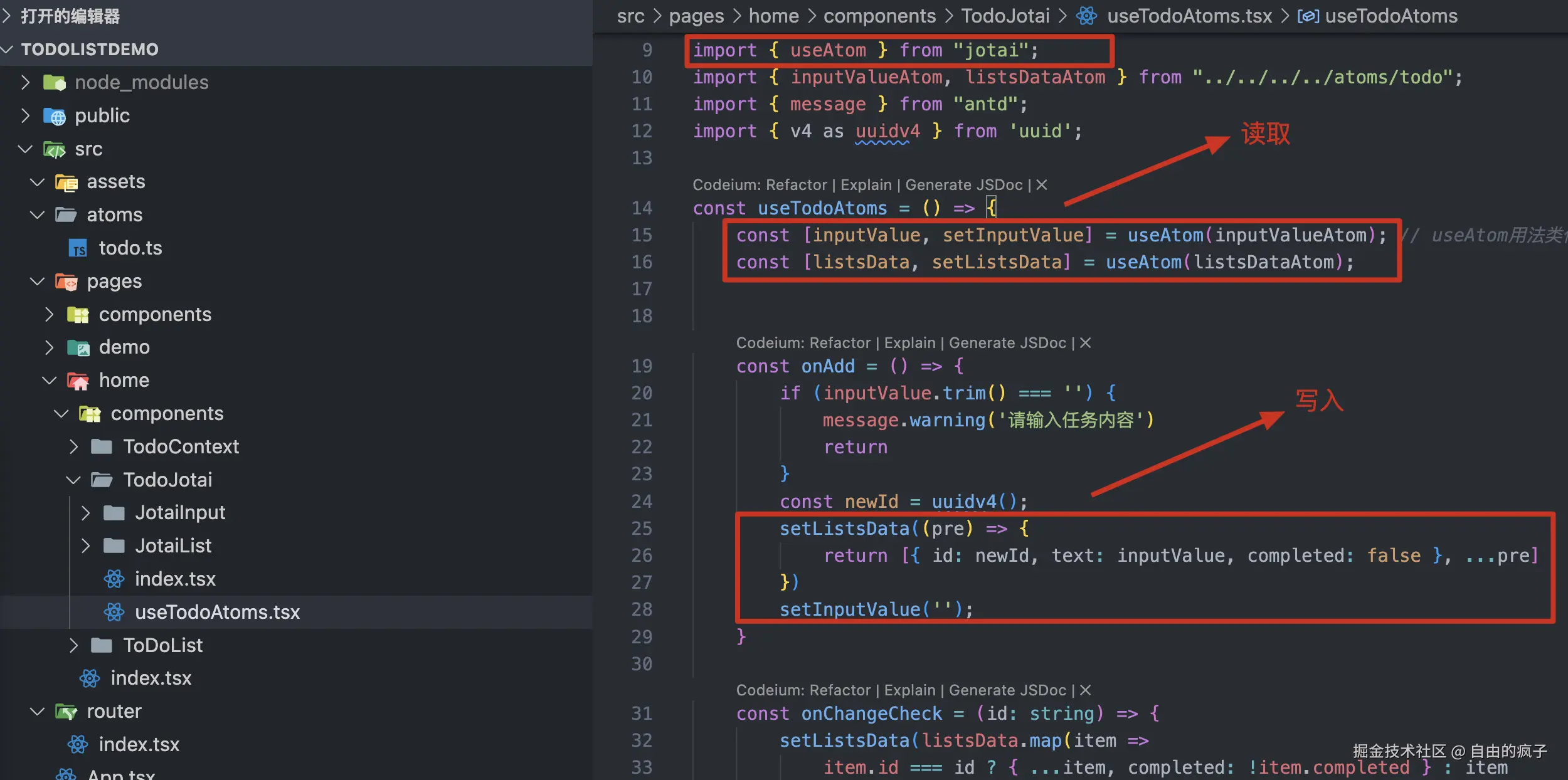 ⚠️注意:创建字段名称一般用Atom结尾,例如 export const inputValueAtom = atom ( '' ) ;