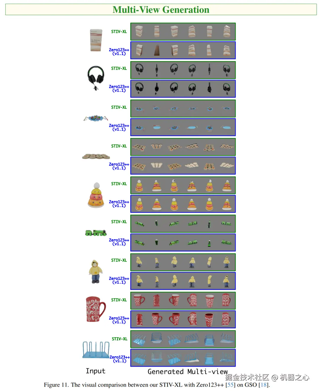 多视角生成旨在从给定的输入图像创建新视角。这项任务对视角一致性要求较高,依赖于良好预训练的视频生成模型。通过将视频生成模型适配为多视角生成,我们可以验证预训练是否有效捕获了 3D 信息,从而提升生成效果。