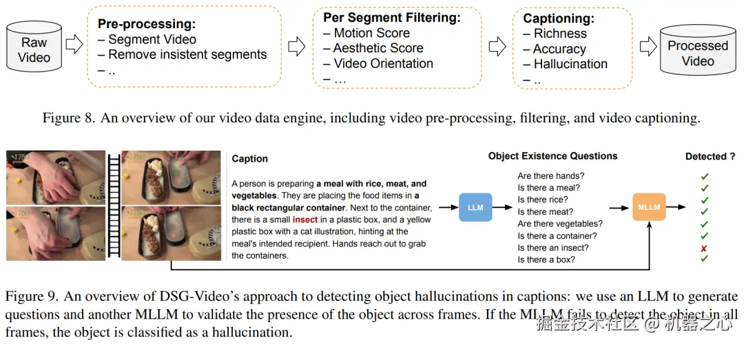 在初步尝试了第一种方法后,我们发现两个主要局限性:一是图像字幕生成器只能捕捉单帧的视觉细节,导致缺乏对视频动作的描述;二是 LLM 在基于多帧字幕生成密集描述时可能会出现虚构现象(hallucination)。