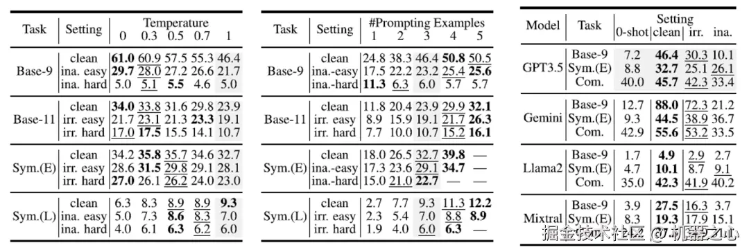对此,我们构建了 NoRa 数据集,并进行了大量的实验评测。结果表明,GPT-3.5-Turbo、Gemini-Pro、Llama2-70B 和 Mixtral-8x7B 等开源或闭源 LLM 都极容易受到噪声思维链的影响。其中,GPT-3.5-Turbo 的准确率至多可降低 40.4%。因此,我们也呼吁大家更多地关注大模型推理的鲁棒性问题。