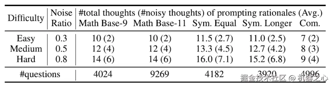 为了评估 LLM 在噪声思维链下的鲁棒性,我们构建了 NoRa(Noisy Rationales)数据集,NoRa 涵盖了 3 种推理任务类型:数学推理、符号推理和常识推理,共包含 26391 个问题以及 5 种子任务。