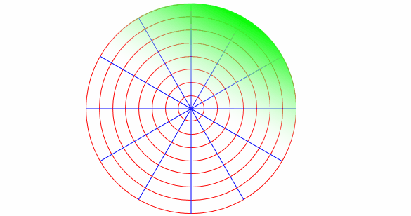 为了更好的定义这个圆,我们将radar的template使用grid面板等距分成四个区域(其实没啥用,主要是为了扇形扫描时做圆心选择的line,也可以不分成四个)。