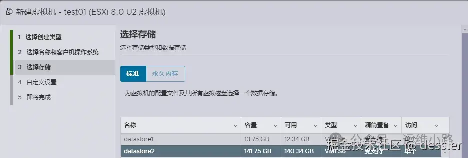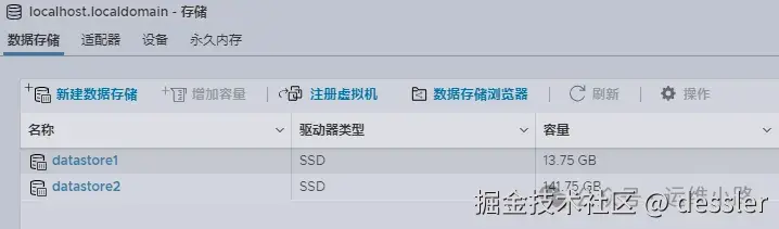 这里的datastore2 就是我们新加的硬盘,可以用来创建虚拟机。而datastore1则是原来磁盘里面划分出来的系统分区。