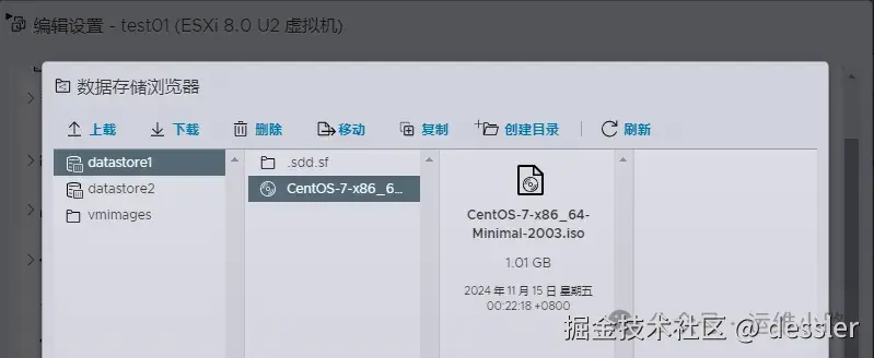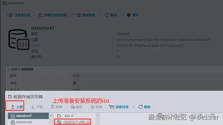 这里把iso上传到第一个数据存储里面,当然也可以上传到你的新磁盘里面。