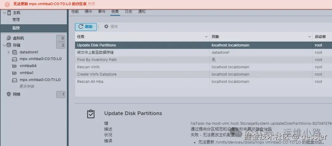 尝试操作删除分区也是失败的。