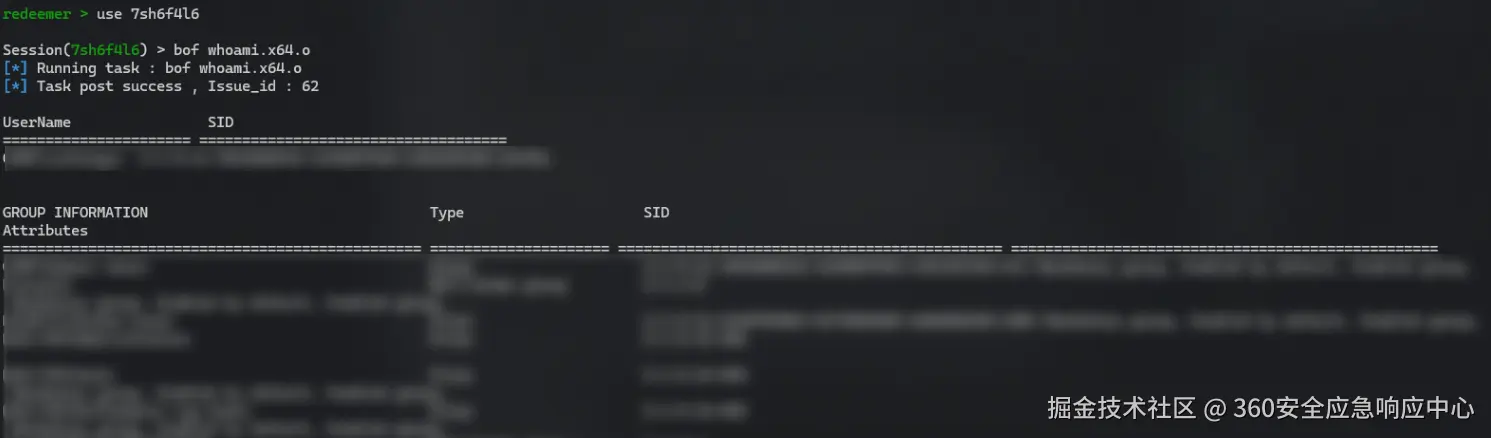 - implant在休眠结束后,需要从TeamServer接收到命令(例如,shell whoami),它会解析并执行该命令(这里实际上不是接收命令,而是去请求获取命令,implant的所有操作和执行结果都是通过请求的方式进行单向访问)。执行完毕后,Implant会将结果封装并通过相同的通信通道发送回TeamServer。随后,再次进入休眠状态,等待下一次唤醒周期的到来。
