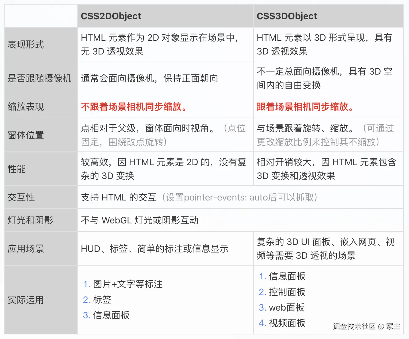 - 当我们将 DOM 元素包装成 CSS3DObject 时,这个元素会被直接放入 3D 空间