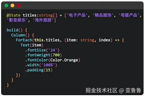 语法:** ForEach(arr, (item, index)=>{这里写循环渲染的内容})**