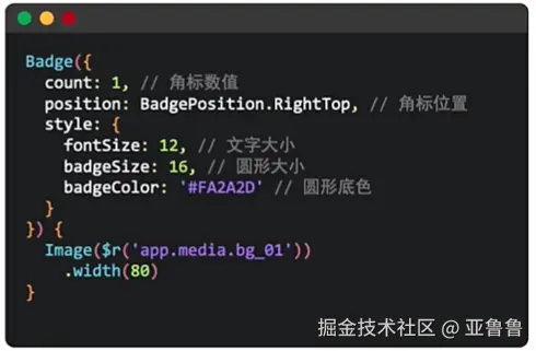 //Badge角标组件,Badge({这里写角标参数}){这里写要显示角标的组件}