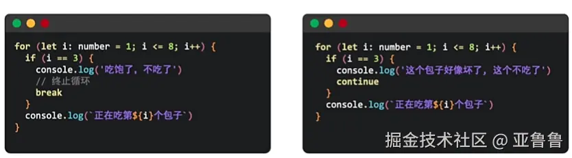 - continue: 退出当前一次循环执行, 继续执行本循环体的下一次循环