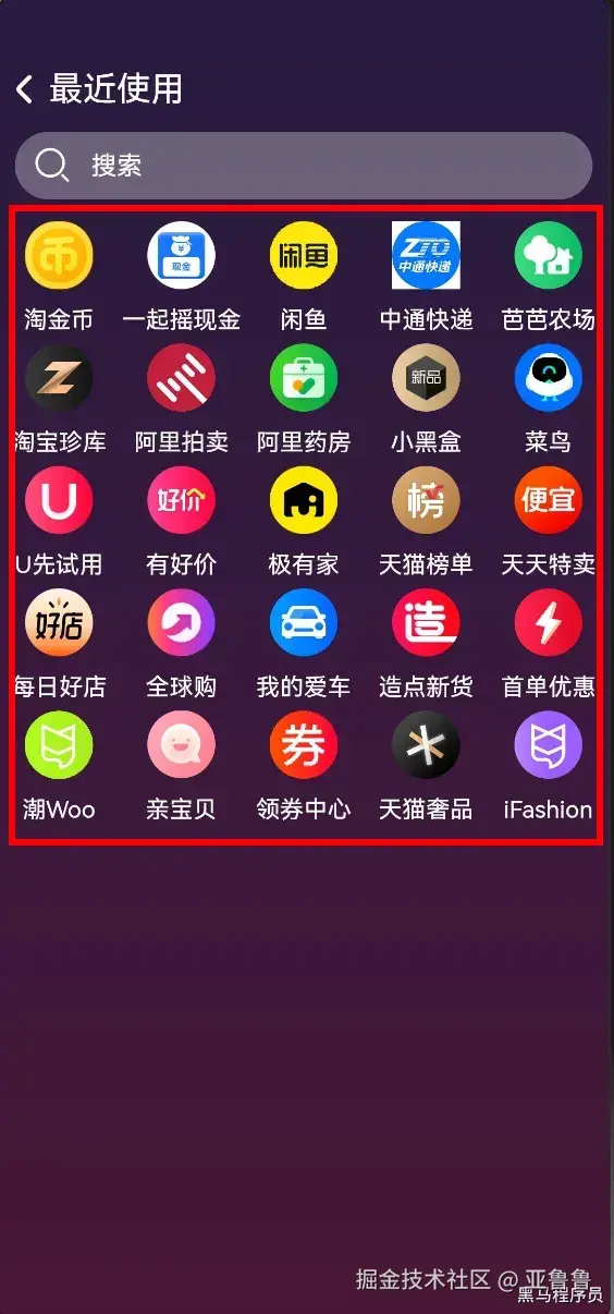 | SpaceAround | 子元素两侧间距相等 第一个元素到行首的距离和最后一个元素到行尾的距离是相邻元素之间距离的一半 |