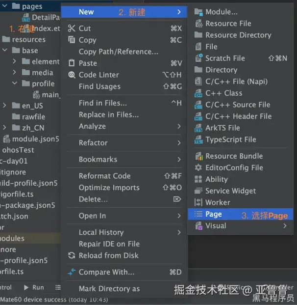 - 手动新建一个页面(ets)文件,需要在** main_pages.json **中手动配置