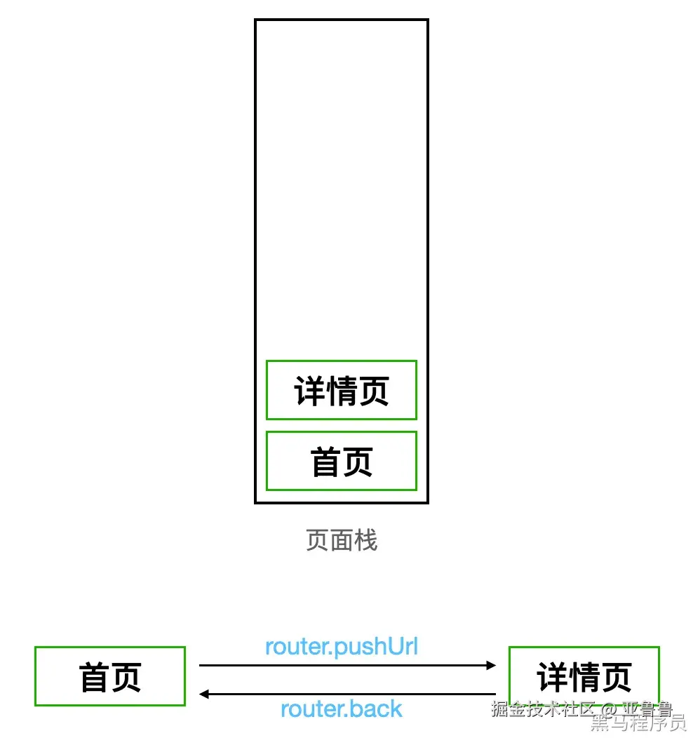 先来看看 pushUrl的情况\ 1默认打开首页 → 首页入栈\ 2pushUrl 去详情页 → 详情页入栈\ 3back 返回上一页 → 详情页出栈\ 4此时页面栈中应该只有一个页面\ 整一个过程中,都可以 router.getLength 进行查看\
