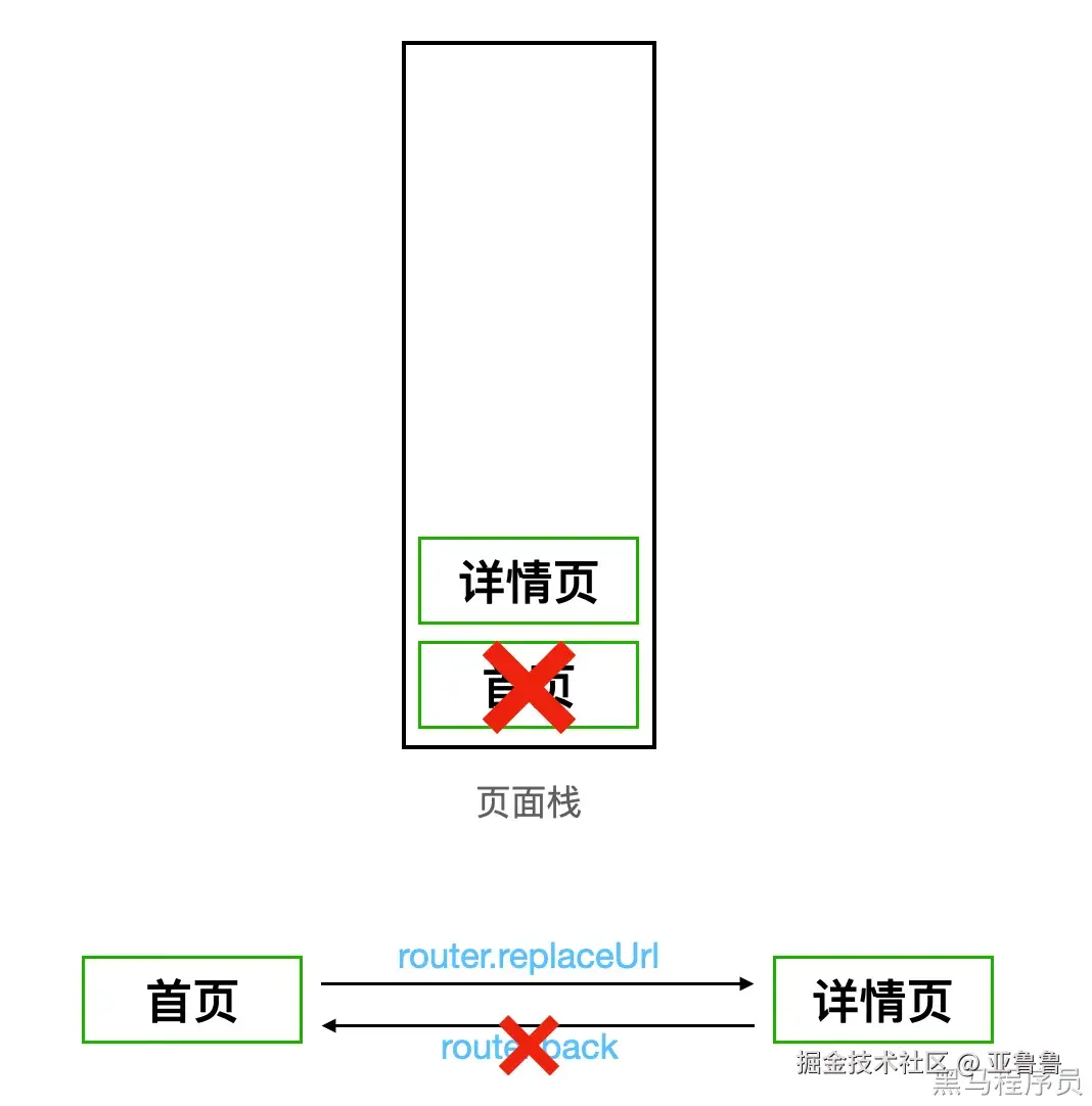 再来看看replaceUrl的情况\ 1默认打开首页 → 首页入栈\ 2replaceUrl 去详情页 → 详情页替换首页,首页销毁\ 3back 无法返回 → 没有上一页\