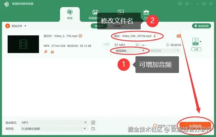 方法二:利用数据 蛙视频转换器转换音频