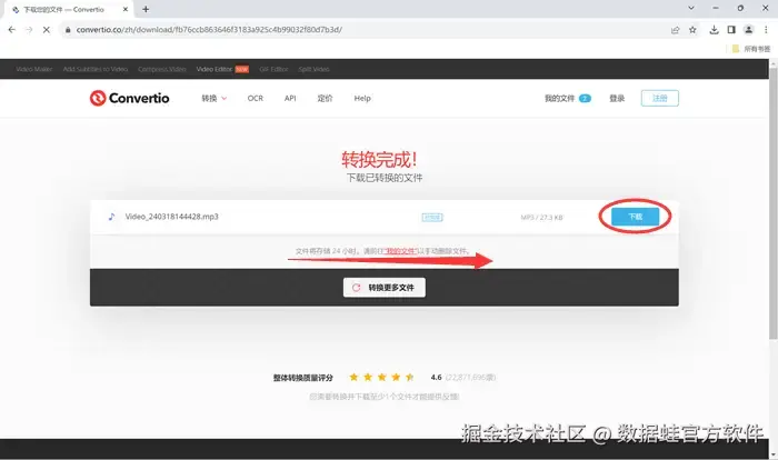 步骤三:当转换操作完成后,点击【下载】按钮,即可轻松将转换后的mp3文件保存到您的电脑中,方便随时回味。
