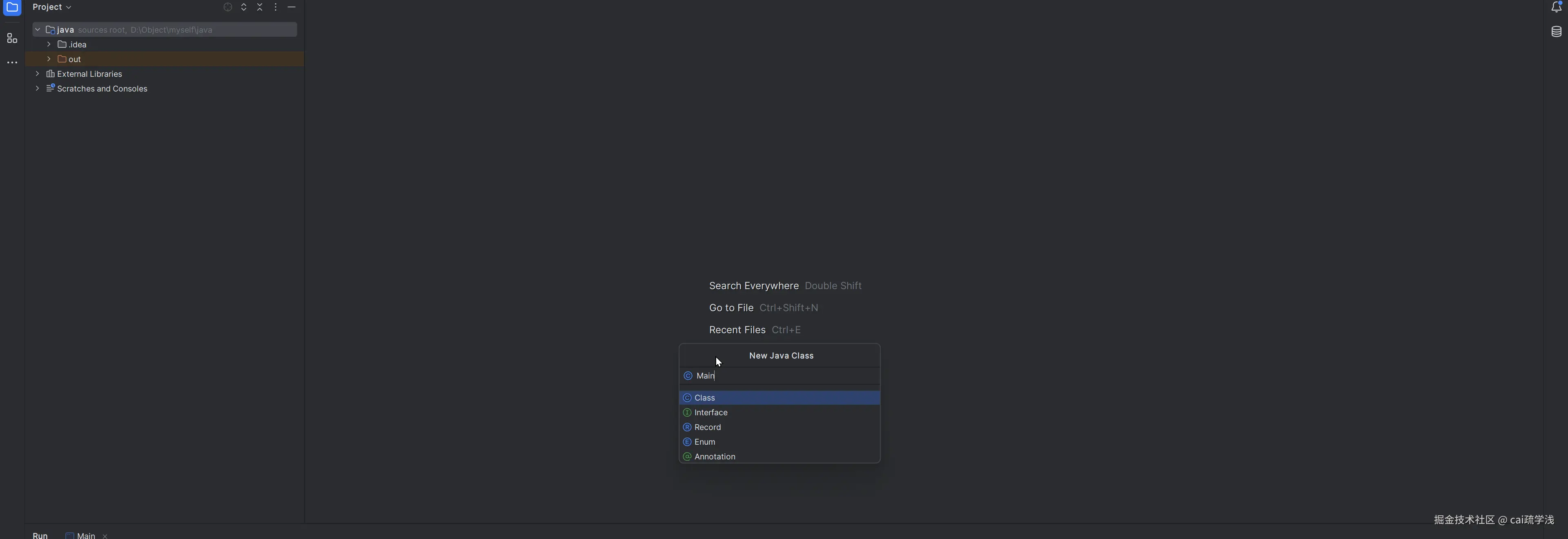 1.新建一个class类,类名为Main。