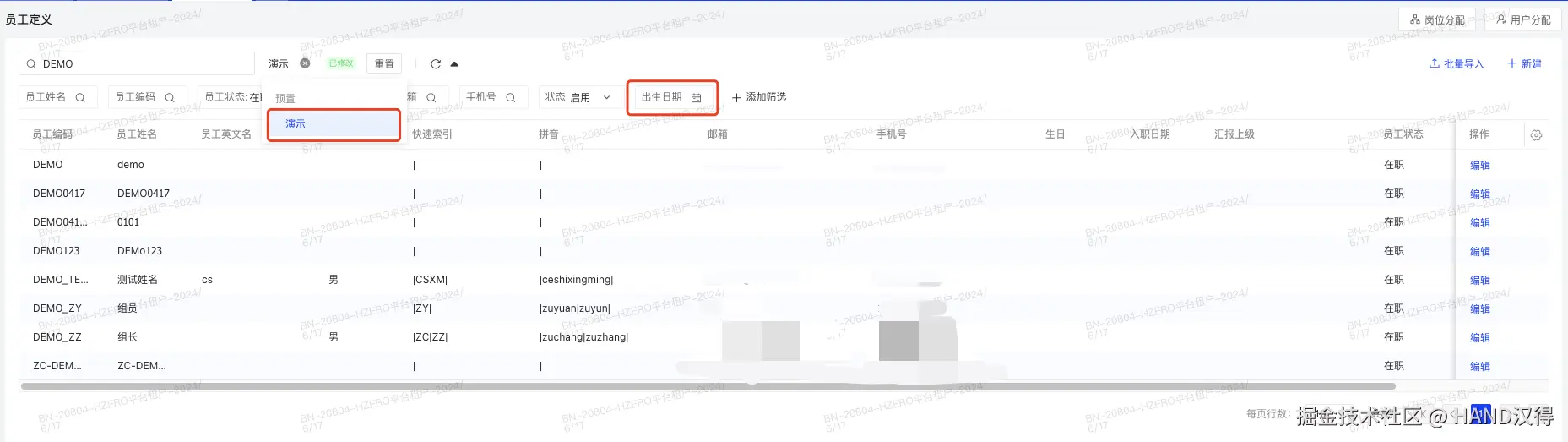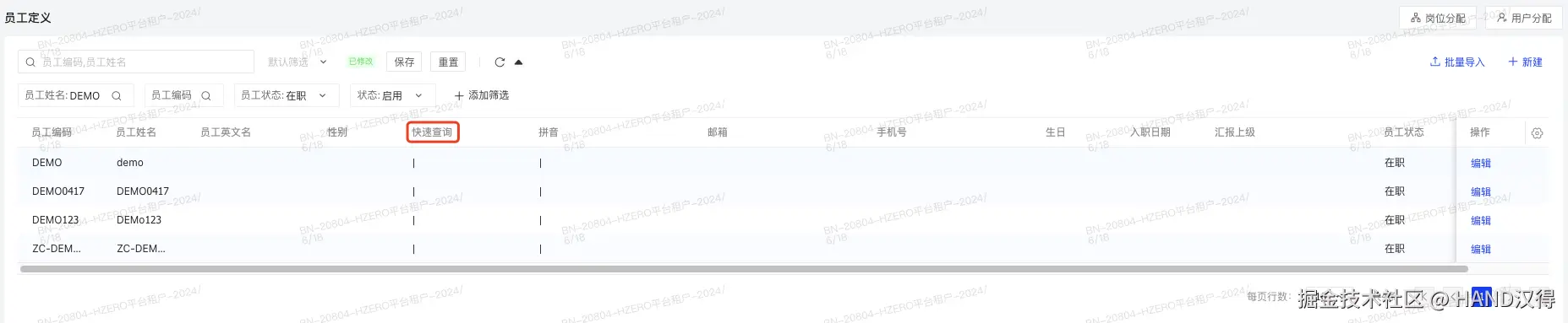 1、维护员工定义-动态筛选条编码