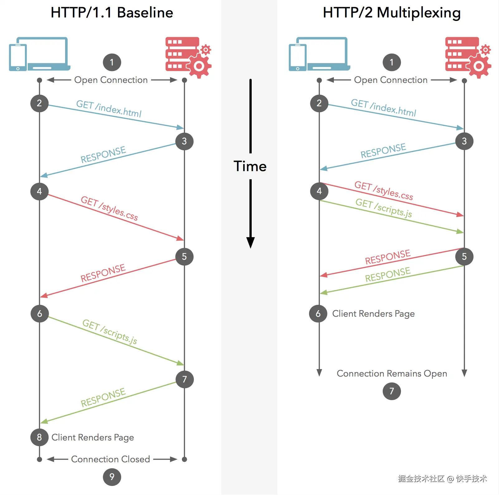 为了提升性能,我们针对仍在使用HTTP/1.1的商业核心项目域名(包括业务域名、CDN域名、埋点域名等)进行了HTTP/2升级。HTTP/2的多路复用特性允许在同一TCP连接上并行交换多重请求-响应消息,从而克服了HTTP/1.1中同一域名下请求数量受限的问题。