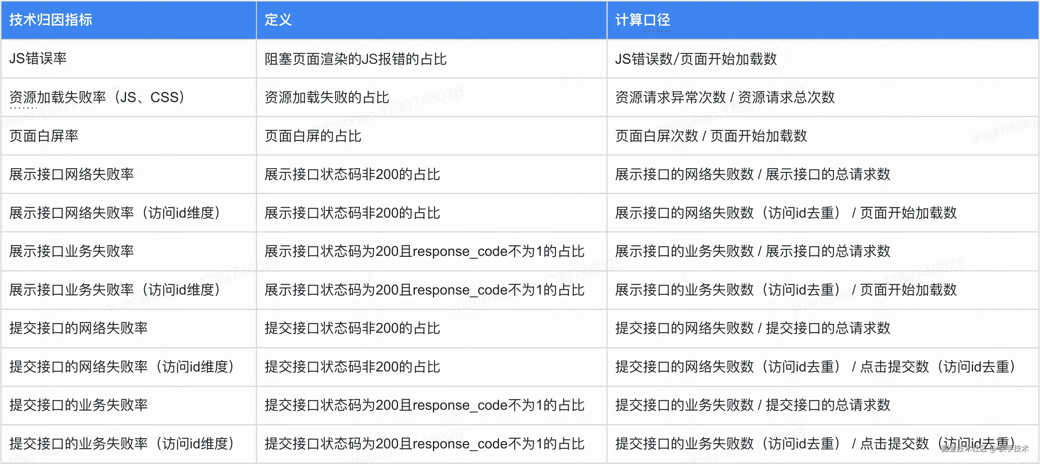 为了分析任务达成率的异常现象,我们还会收集一系列技术指标进行监控。当任务达成率的细分指标出现异常波动时,这些技术指标将作为关键的诊断工具,帮助我们定位问题的根源。具体的技术归因指标包括但不限于: