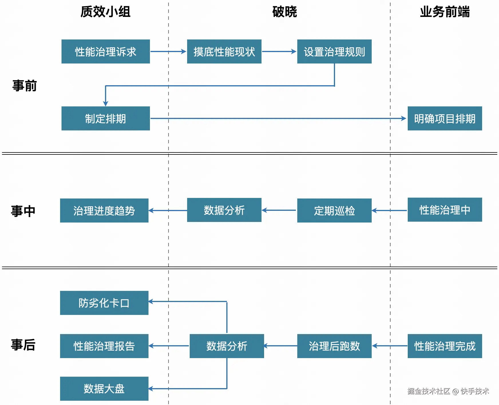为了系统化地提升和维护页面性能,我们构建了一套「事前-事中-事后」的性能评估模型和防劣化机制。