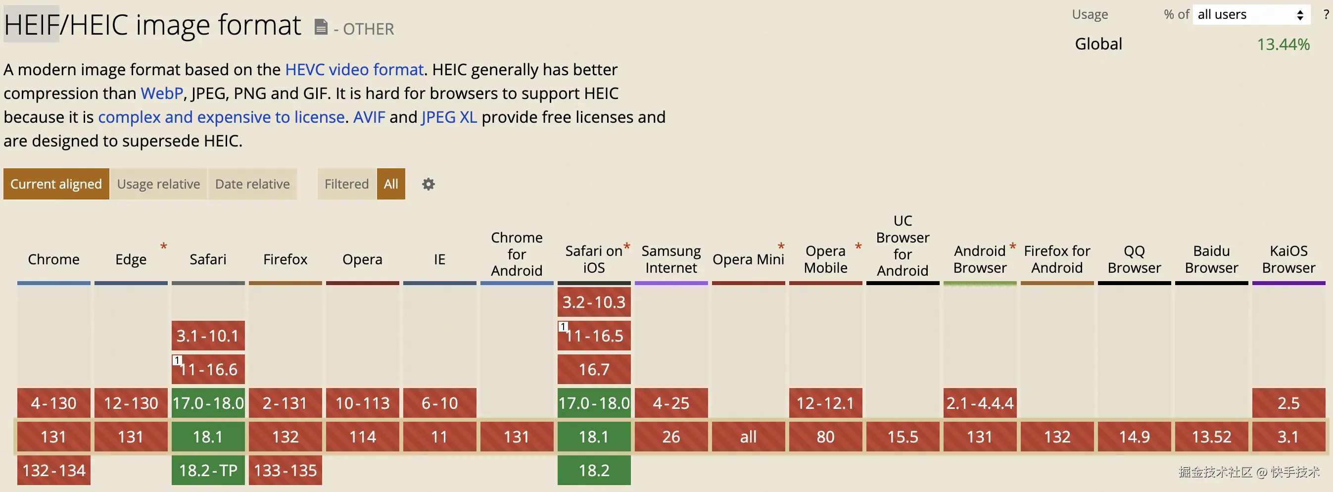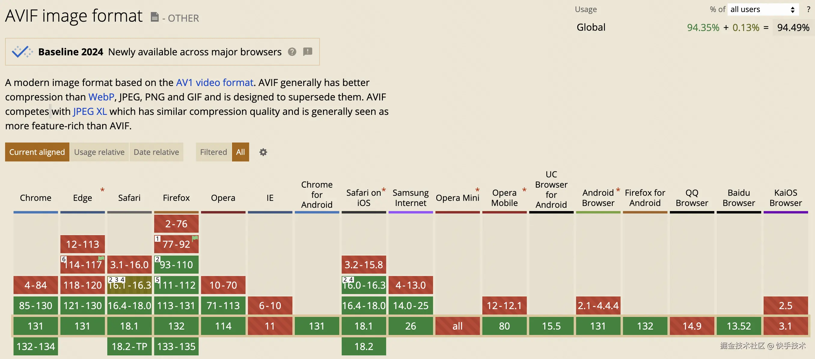 尽管WebP已经表现出色,但随着技术的不断进步,更高效的图片格式如HEIF和AVIF相继出现。HEIF使用HEVC的帧内编码技术,具有HEVC帧内编码工具集,达到了更高的压缩率、更好的画质。AVIF则是基于AV1视频编解码器的图片格式,在高压缩比和较高的视觉质量方面比WebP和HEIF更优。然而,这些新格式在兼容性方面仍存在挑战,尤其是与老旧设备和浏览器的兼容性问题,限制了它们的广泛应用。目前,快手APP已经支持HEIF格式,端内的图片库也增加了相关参数以支持这一格式。此外,快手还自主研发了KVIF格式,比AVIF和HEIF更优。