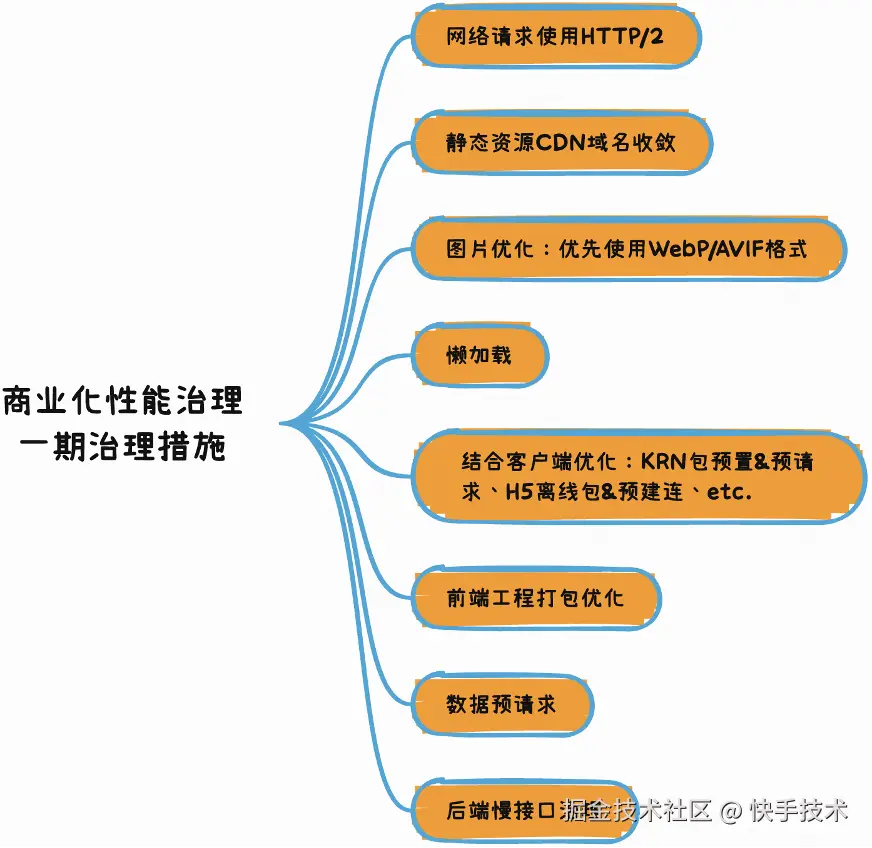 - 问题:性能优化治理涉及页面较多,且项目间发展阶段不同,影响性能背后的问题差异较大,统一推进治理难度较高,但如果放任业务方各自优化则重复工作较多,探索最佳实践的难度较大;