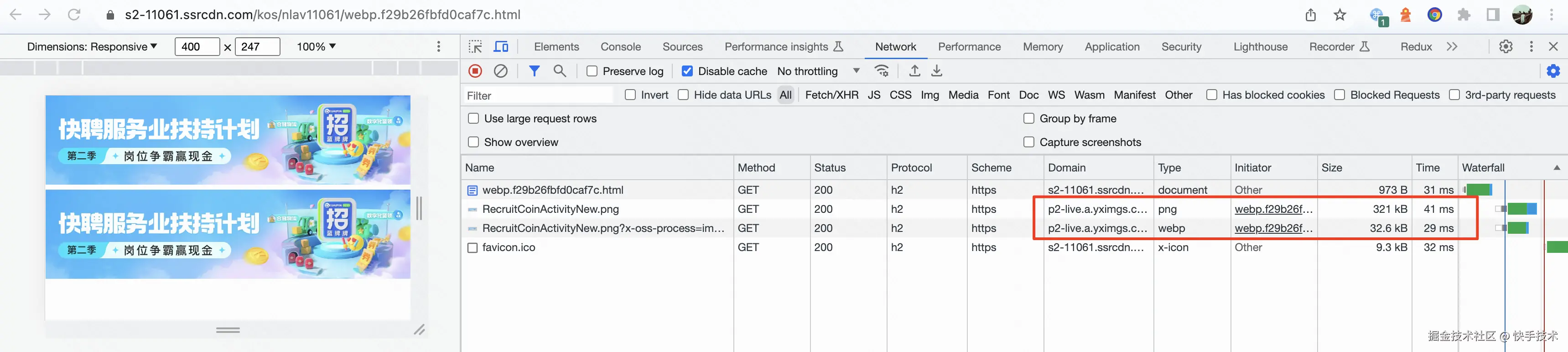 图片资源的优化成为提升网站性能的关键一环,我们采用兼容性较好的WebP格式。与传统的JPG和PNG格式相比,WebP通常能提供更小的文件体积,从而加快网页加载速度并节省带宽。同时,快手的CDN服务支持自动将PNG、JPG等格式的图片资源转换为WebP格式。以下面的图片为例,将PNG图片转换为WebP可以减少80+%的体积: