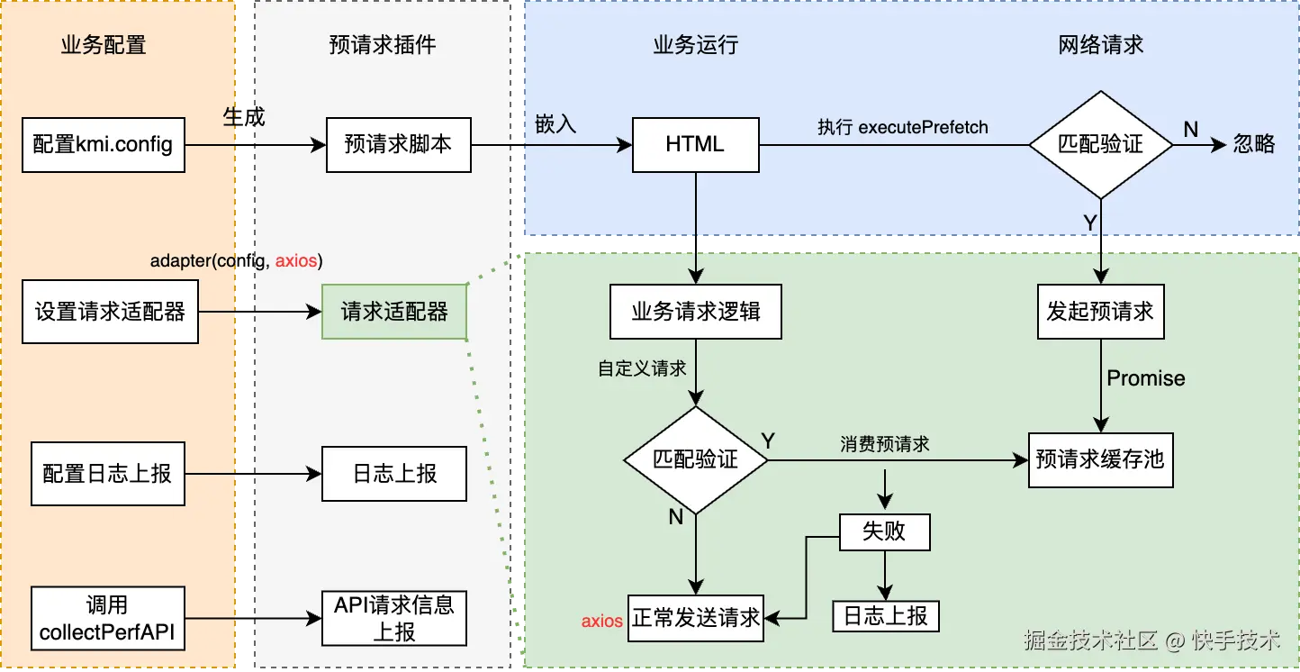 我们的数据预请求方案结合KMI实现了发起预请求、消费预请求、日志上报和缓存机制等主要功能。通过工程配置,用户可以在解析时立即发起预请求并缓存结果,随后通过插件暴露的适配器对预请求结果进行消费。同时,我们在关键节点上报自定义事件,收集预请求API信息以完善日志能力。缓存机制避免重复请求同一数据,进一步加速了页面加载速度。