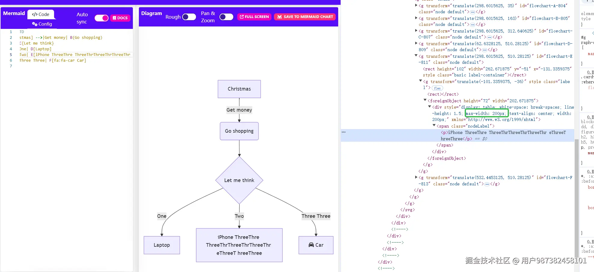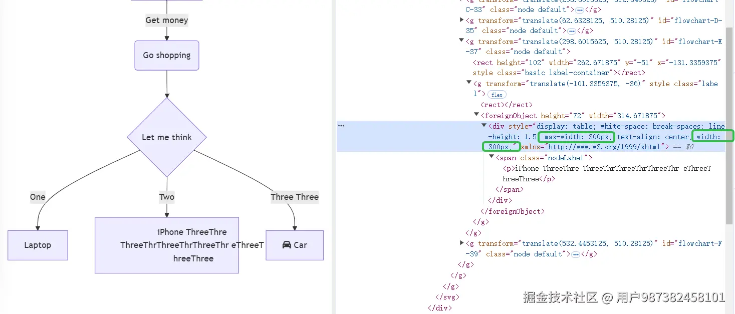 Mermaid是 运用 节点元素宽度最大为200 超出自动换行 但是换行完没显示br