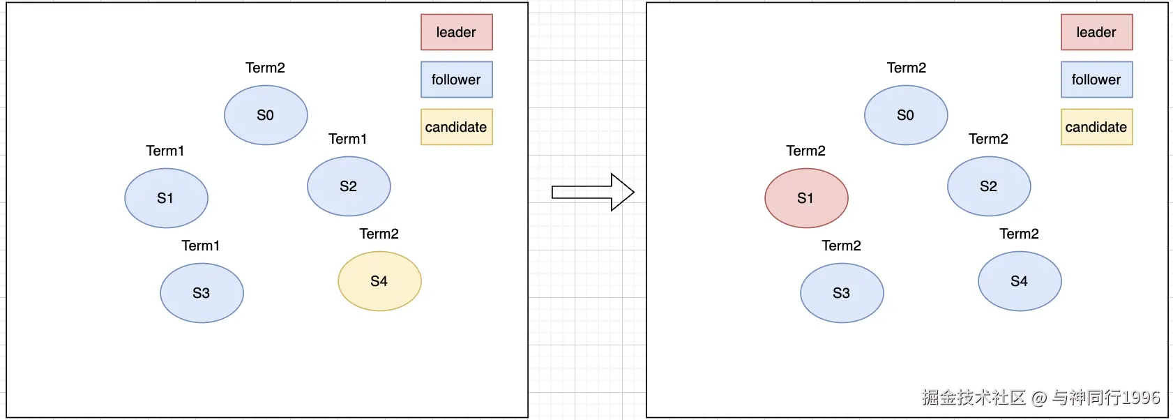 那么这次选举有必要吗?实际上Term1的leader S0,必然具有最全的日志,只是他的term相较于S4落后了。于是,有趣的事情发生了,一个非法的节点却让整个集群服软了,强行选举并提高了整个集群的Term。
